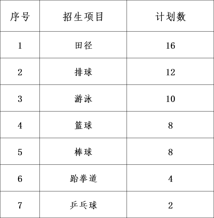 我校2025年运动训练专业拟招60人,分项目拟招生计划如下: