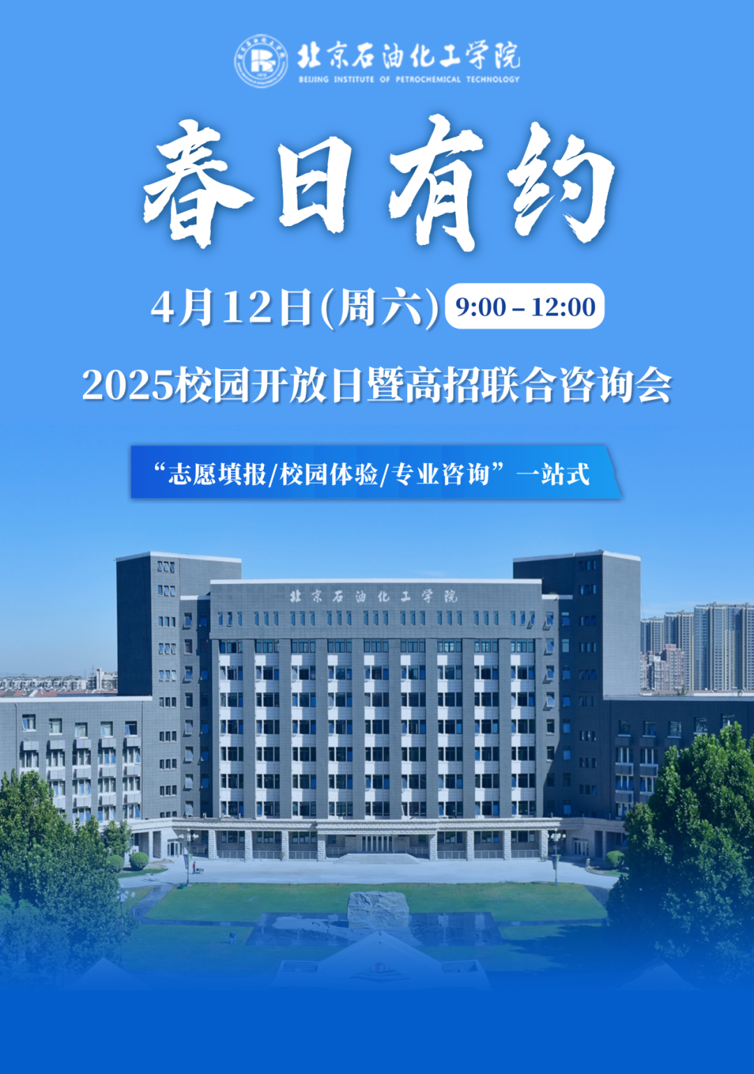 为助力广大考生科学规划升学路径,搭建高校与考生精准对接平台,北京石油化工学院联合大兴区教育考试中心、《教育头条》将于2025年4月12日(星期六)举办“校园开放日暨高招联合咨询会”,携手70余所京内外知名高校,为考生搭建一站式高考咨询平台。现将具体安排公告如下: