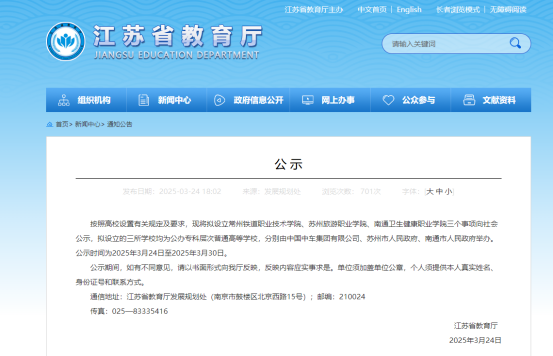 近日,江苏省教育厅发布两则公示,拟设立4所高等职业学校,其中包括1所专科院校更名升本和3所新设置的专科院校。这一举措旨在进一步优化全省职业教育布局,提升技术技能人才培养质量,为江苏经济社会高质量发展提供有力的人才支撑。