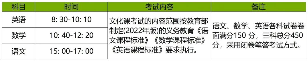 三、4月12日的文化课笔试考试,开考15分钟后,迟到的考生不得入场;上午英语、数学考试结束后,考生可自行选择是否离开考点,待下午语文考试开始前适时回到考场即可,考生交卷离场后不得在考场附近逗留。