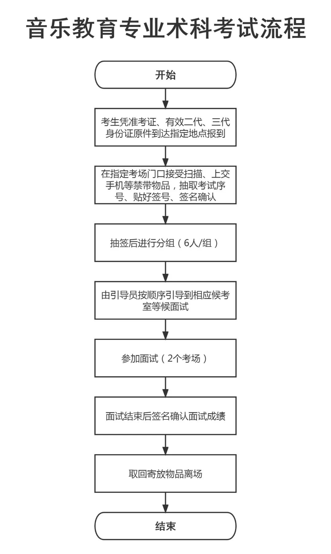 四、音乐教育术科考试时间4月13日上午8:20-12:20,如考生晚于12:20到达考场,则不得进入考场参加考试。选择唱歌或舞蹈作为考试项的考生,可自带小型音乐播放器播放伴奏音乐;需要现场钢琴伴奏的,请自备乐谱。