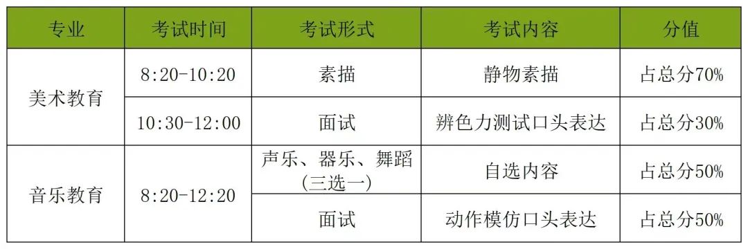 五、美术教育的考生务必在4月13日上午8:20准时参加美术教育术科考试,8:35分不得再进入考场,工具材料考生自备,请带上四开画板和绘画工具。