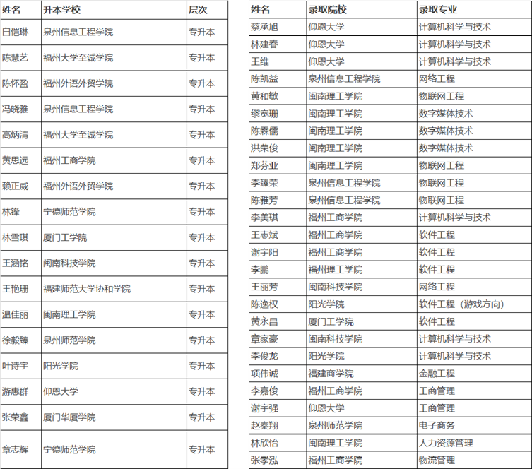 部分毕业生专升本情况