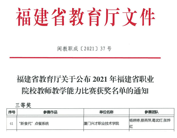 教师团队多次获得省级教学能力大赛三等奖: