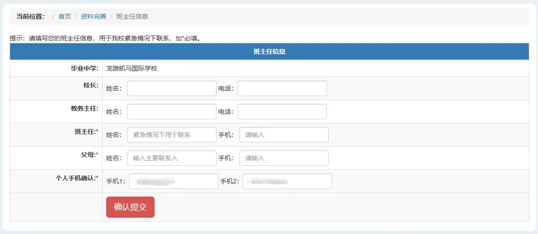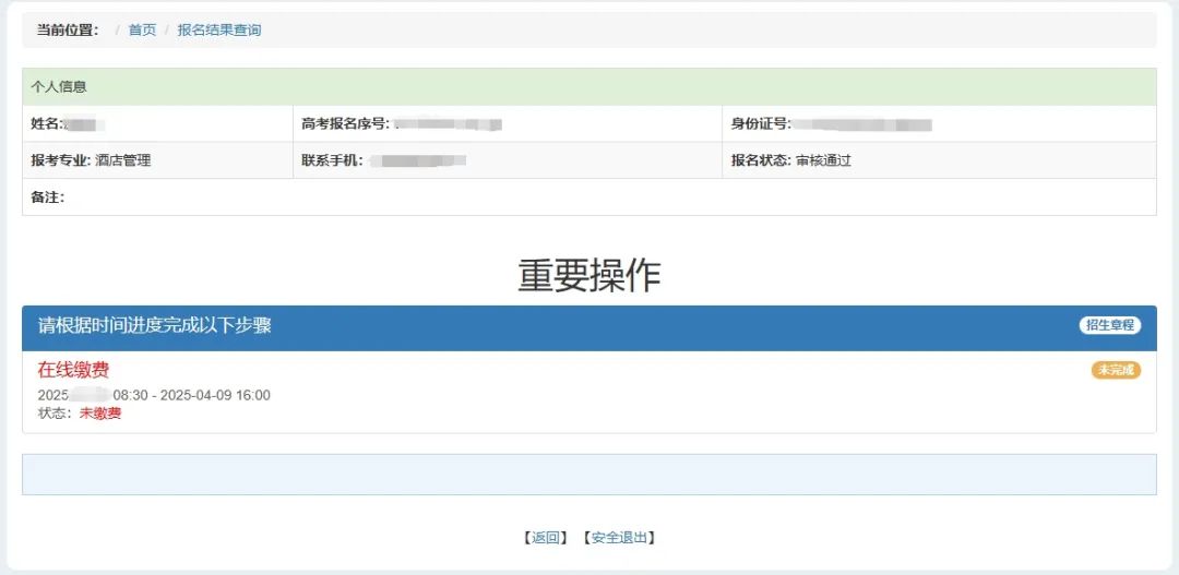 确认无误后,点击报名表单底部的“提交”按钮,提交考生信息,提交成功系统自动返回到报名查看界面。