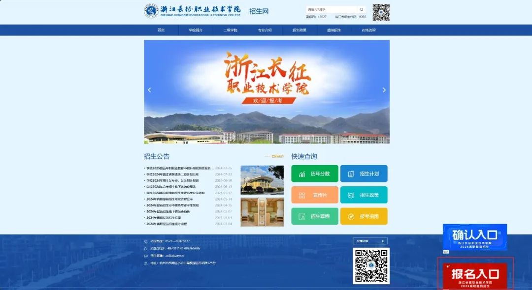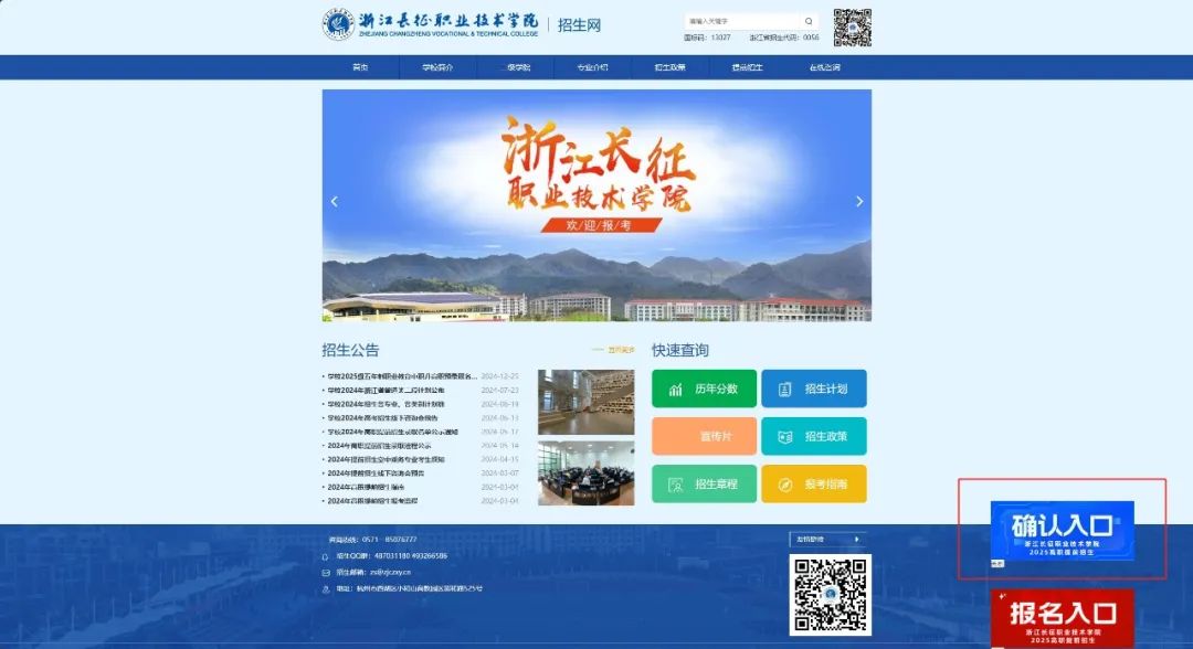 (电脑端)登录浙江长征职业技术学院招生网(网址:http://zs.zjczxy.cn )首页,点击右下角“高职提前招生网上确认入口”。