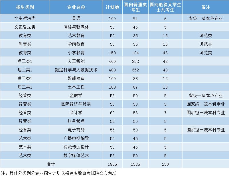2025年专升本招生专业计划一览表