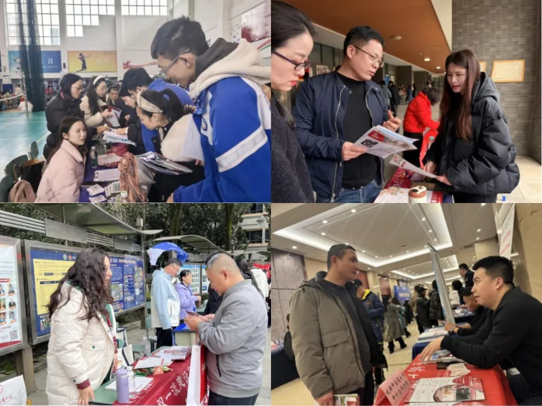 为积极应对四川省首届新高考落地,助力考生和家长全面了解我校的招生政策,2025年3月14至16日,我校开展了本年度首次招生咨询活动。招生宣传组成员杨慎峭、马锐、杨蕾、徐雁行、韩雪花、余薇、林晶晶、杨茗、魏宇晴、张蝶、钟天一、赵入贤、张晶晶、亢馨蕊、程慧玲、杨宛鸯共16位老师,分别前往成都外国语学校、成都七中万达、通锦校区、成都二十中、成都二中、温江中学、成都八中、棠湖外国语学校、成都教科院附中、成都实验外国语学校、成都市锦江区嘉祥外国语学校等高中学校,进行实地招生咨询服务。