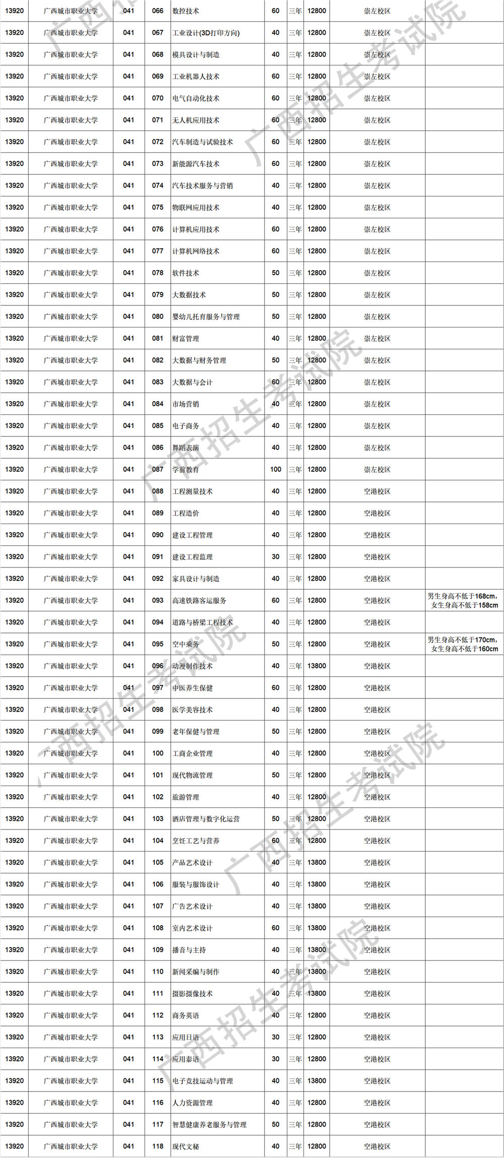 广西城市职业大学2025年高职对口招生计划信息表