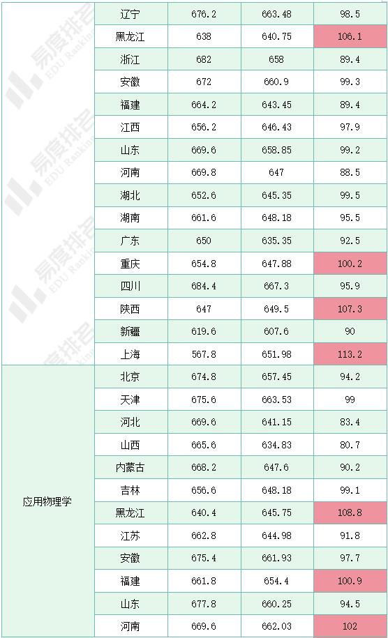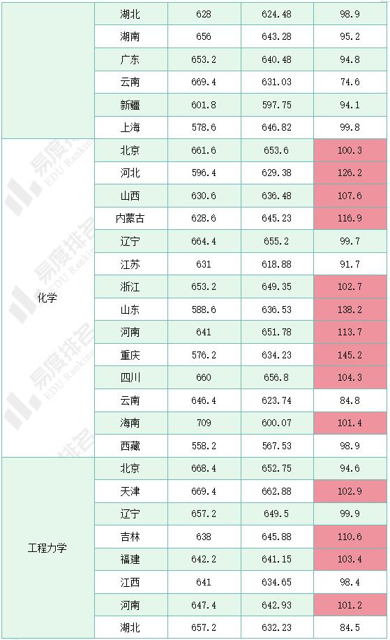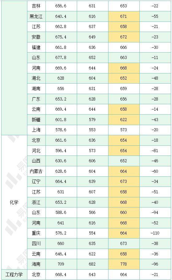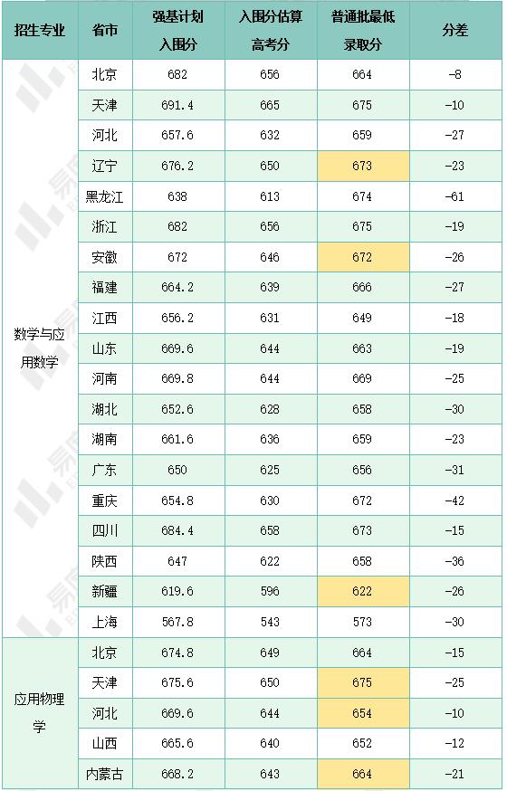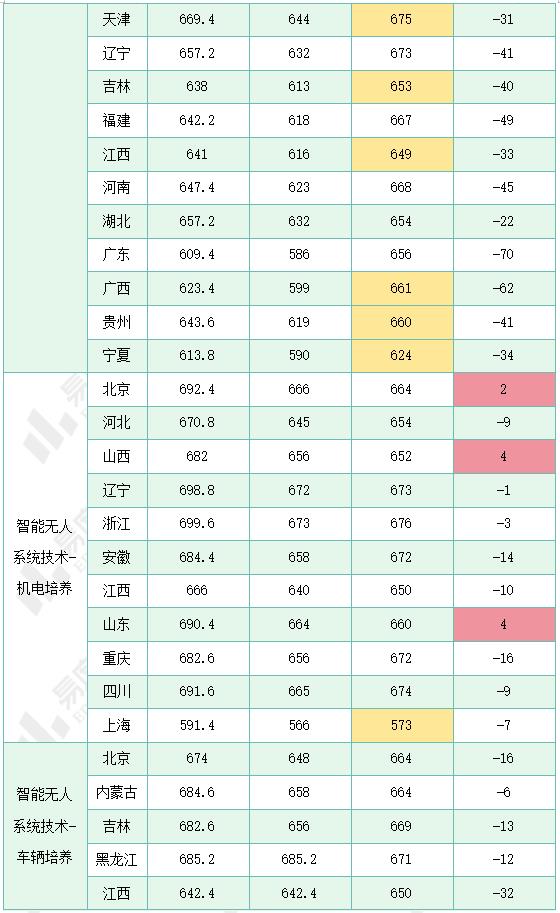 3.普通批最低录取分:单元格标黄的为在该省市内普通批相同科目录取的最低分,其余为招生专业(类)备注中包含该专业的普通批最低录取分