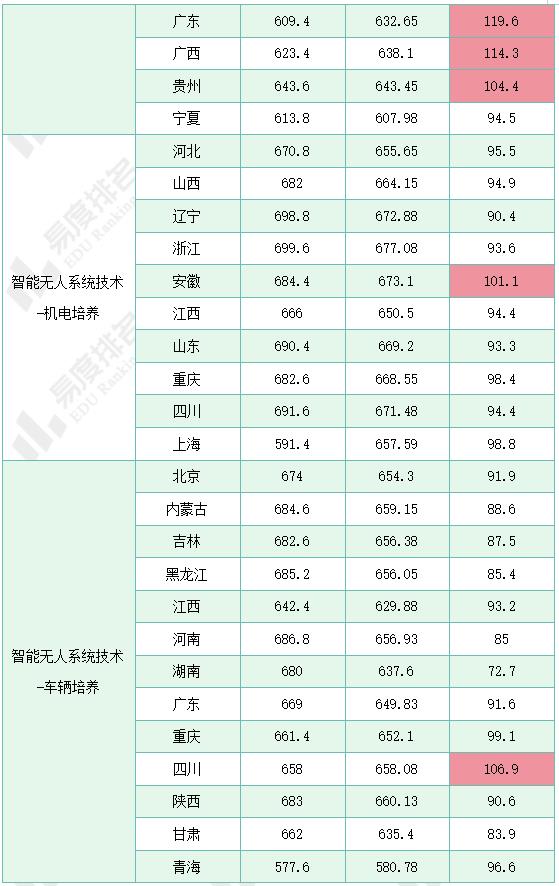 4.分差=入围分估算高考成绩-普通批最低录取分,分差标红色表示入围分估算的高考成绩高于普通批最低录取分