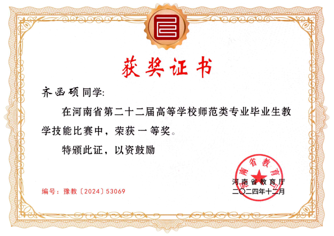 专业技能培养扎实。近年来,本专业师生在第六届全国大学生艺术展演中获得一等奖,获得教育部美术教育专业学生与教师基本功展示活动单项奖、个人全能奖、团体奖共计十余项,河南省高等学校师范类专业毕业生教学技能比赛中获得一等奖十余项,学生的专业技能素养培养扎实,在美术学专业领域起到了积极的引领作用。