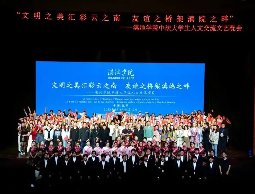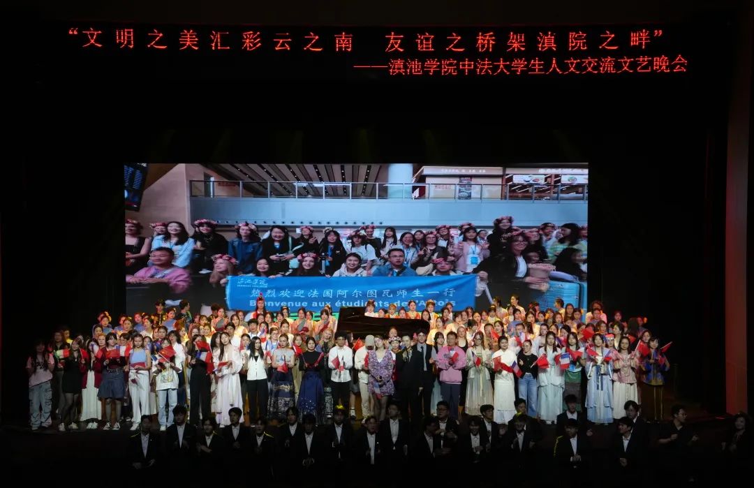 4月15日晚,“文明之美汇彩云之南 友谊之桥架滇池之畔”滇池学院中法大学生人文交流文艺晚会在我校杨林校区报告厅圆满举办。滇池学院校长马杰、党委书记陈炳灿,学术委员会主任袁剑波,副校长向晓明,人文学院院长宋家宏、艺术学院院长郭亚非,保卫处副处长方亚杰,外国语学院、体育学院、人文学院师生代表和法国阿尔图瓦大学27名师生参加晚会。