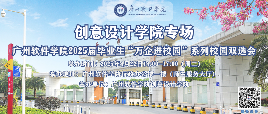为全面落实党中央、国务院对高校毕业生就业工作的决策部署,推动人才供需精准对接,全力促进高校毕业生高质量充分就业,我校将举办广州软件学院2025届毕业生“万企进校园”系列校园双选会——创意设计学院专场,欢迎各年级同学参加。