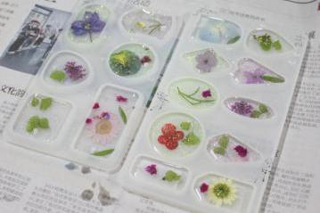 活动高潮定格在传统技艺体验环节。在专业导师指导下,家长与孩子携手制作滴胶腊叶标本。稚嫩的小手细心整理叶片、花瓣纹路,精准施胶固定,当薄荷、艾草等植物在透明滴胶中定格永恒春色,传统炮制技艺的匠心在亲子协作中薪火相传。