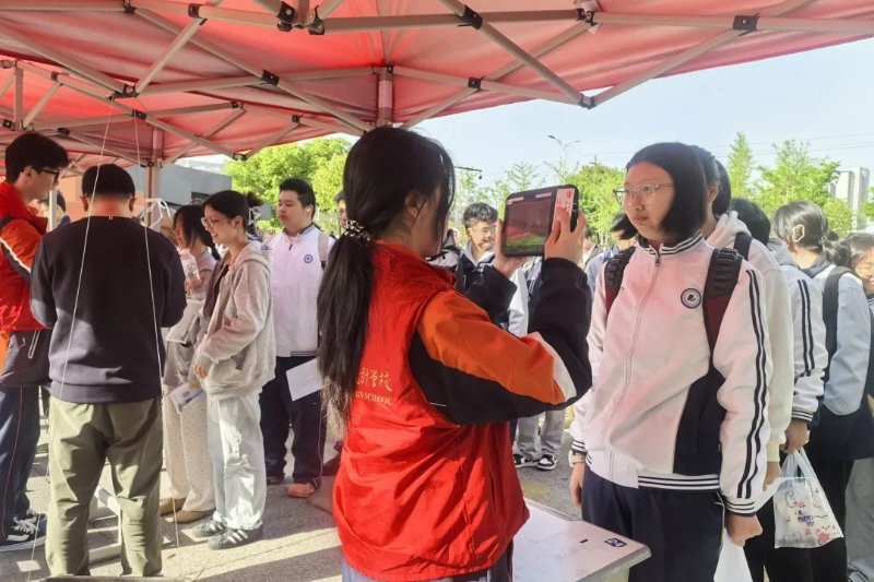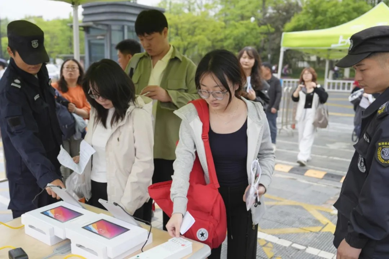 本次考试我省各考点全面使用人脸识别系统进行身份验证。从现场的情况看,考生普遍提早抵达考点,在考点工作人员的指引下有序排队通过人脸识别验证。考试区域实行封闭管理,考生手机等物品统一存放在考点指定位置,随后依次通过智能安检门以及进入考场前的第二次安检。