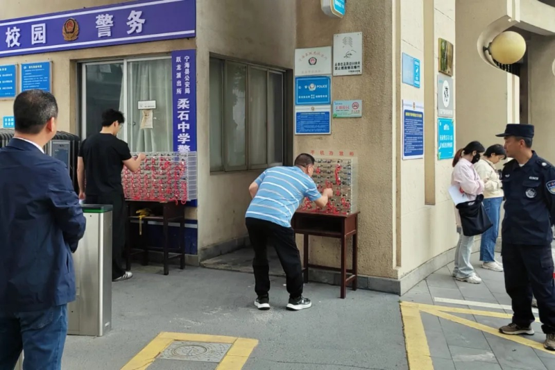 宁波、温州、杭州等地考生存放物品、根据指引有序安检