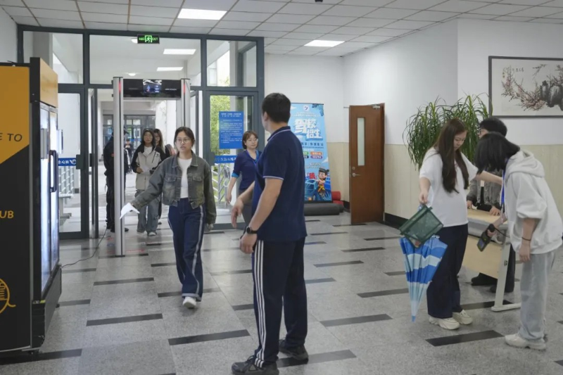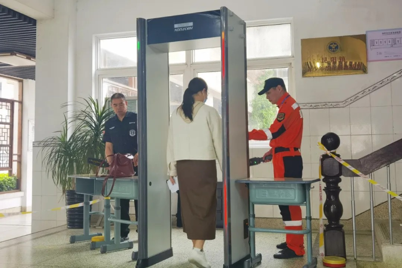 开考首日,我省部分地区受到大风阴雨天气影响,有关考点提前制定应对预案,通过在安检区域和手机存放区域架设遮雨棚,将智能安检门等设备和通道设置在楼道内等方式,保障安检验证入场规范顺畅。