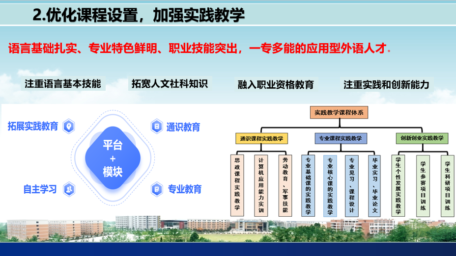 近年来,学院以“双创引领、教赛相融”为抓手,不断推动内涵建设与特色发展,在全国及地方外语类师生竞赛、互联网创新创业大赛、自主创业、服务地方等方面均取得了不菲成绩,先后获得国家级比赛奖项100余项。