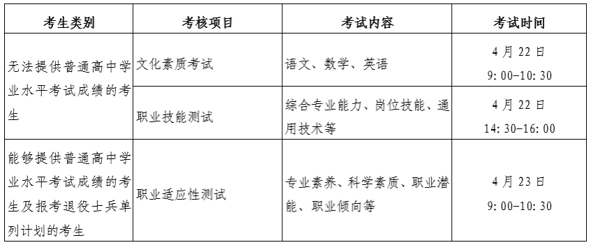 5. 报考退役士兵单列计划的考生免文化素质考试,但仍需参加职业适应性测试,实施计划单列,单独录取。