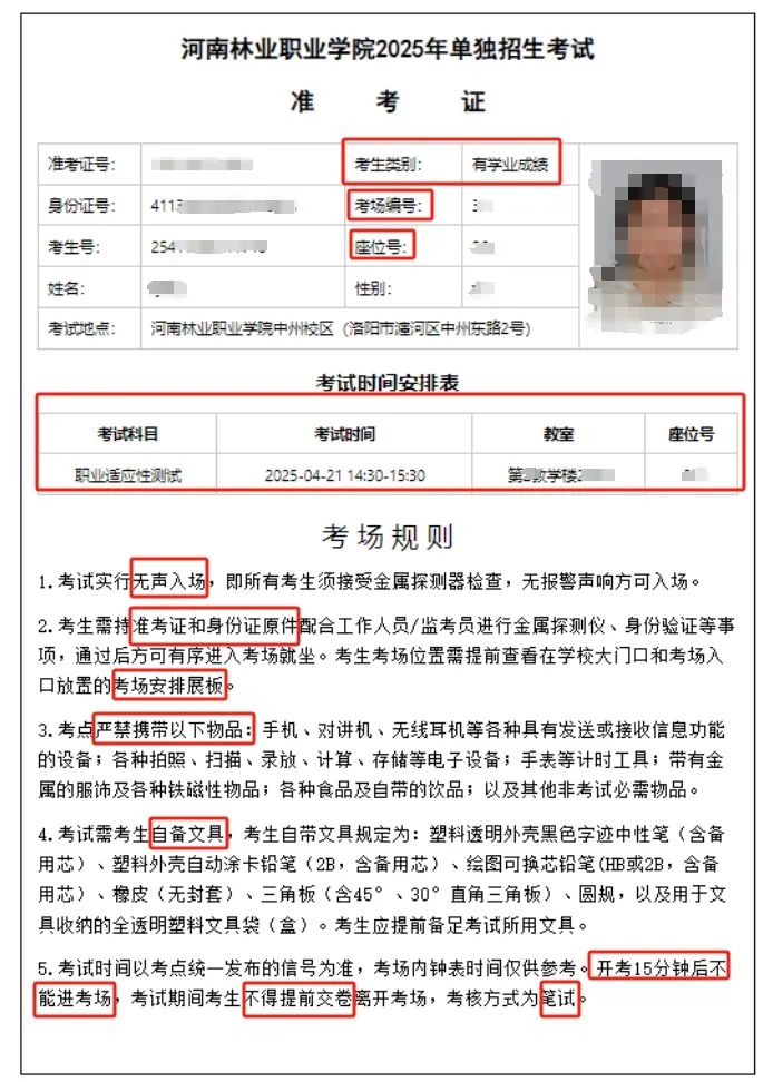 准考证打印时间为4月18日18时至4月21日18时,考生输入身份证号、密码(初始密码为身份证号后六位)登录,登录网址为:https://hnfvc.best-edu.cn/,登录后请及时修改密码。