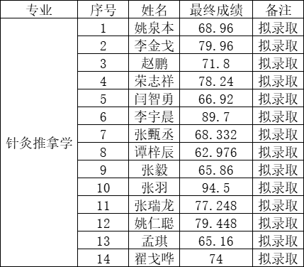 根据《山西省招生考试管理中心关于做好我省2025年专升本免试入学及退役大学生士兵免于文化课考试招生工作的通知》(晋招考研〔2025〕9号)的相关规定及《山西中医药大学2025年专升本免试入学及退役大学生士兵免于文化课考试招生工作方案》精神,我校于4月18日组织了免于文化课考试退役大学生士兵专升本职业技能综合测试,现将我校本次测试最终结果及拟录取名单予以公示,公示期10天。监督举报电话:0351-3179859、3179767。