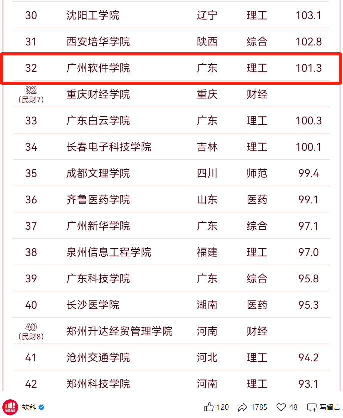 在广东省内民办高校中排名第4名