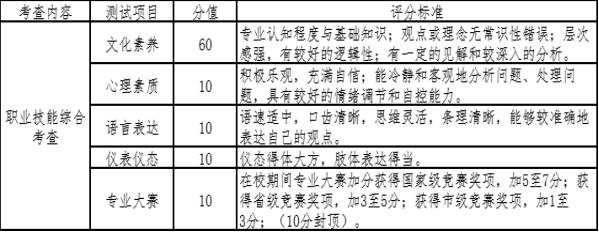 二、职业技能综合考查(一)考查对象报考专业人数超过我校招生计划的退役大学生士兵考生。(二)考查方式和时间方式:线上考查;时间:2025年4月21日--22日,具体时间另行通知(请考生务必保持通讯畅通)。(三)考查办法学校根据《潍坊理工学院2025年退役大学生士兵考生免试专升本招生考查方案》,结合退役大学生士兵考生特点对文化素养、综合素质、语言表达等内容组织职业技能综合考查,满分为100分,每位考生回答问题的时间控制在15分钟以内。评价标准如下: