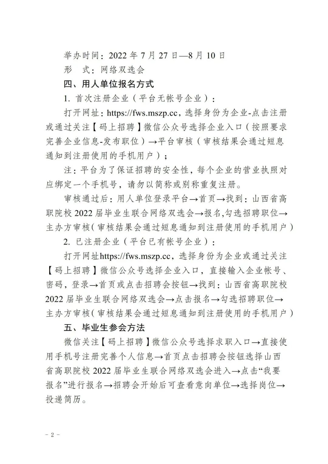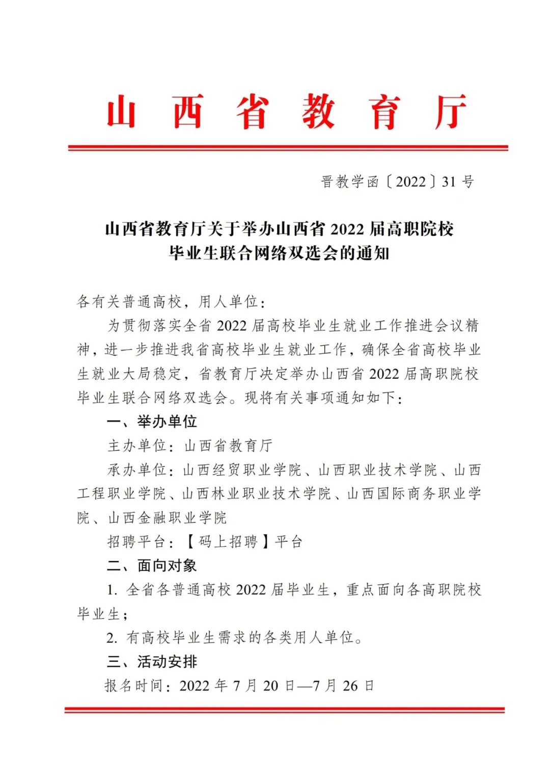 山西省教育厅关于举办山西省2022届高职院校毕业生联合网络双选会的通知