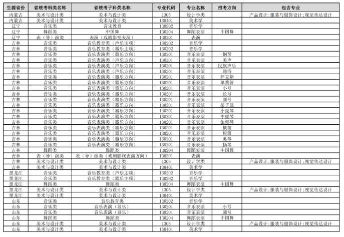 音乐表演、音乐学、美术学、视觉传达设计、舞蹈表演、作曲与作曲技术理论
