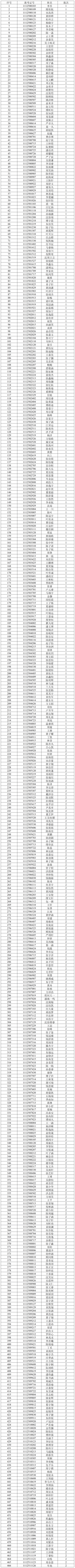 2. 入围面试考生名单如下:
