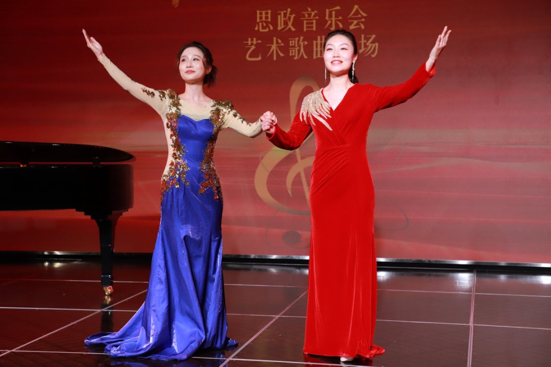 在音乐会的筹备过程中,副院长黄娟教授作为我院校级课程思政示范团队负责人带领课程思政团队精心策划、反复打磨,从曲目选择到舞台表演,每一个环节都融入了思政教育的理念。他们深入挖掘音乐作品背后的历史文化内涵和思想价值,深刻感悟作品所蕴含的精神力量,从而在舞台上以饱满的情感和精湛的艺术表现力,将音乐作品的内涵与精神展现了出来。