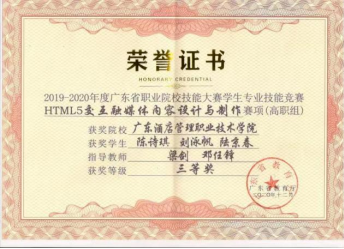 为提高学生学习积极性和竞争意识,在教学过程中以赛促学,学院每年都组织学生参加各类专业技能类竞赛,包括广东省职业技能竞赛、全国数字媒体艺术大赛、大学生广告艺术大赛、蓝桥杯全国软件和信息技术专业人才大赛等,并取得不错的成绩。