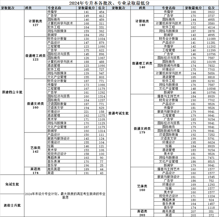 重庆外语外事学院2024专升本各批次及专业录取分数