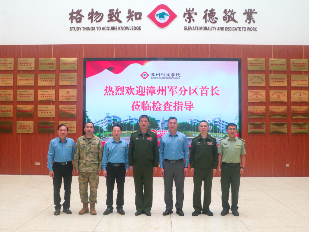 2025年4月8日下午,漳州市委常委、军分区大校司令员陈超,漳州军分区动员处上校处长杨允芽,漳浦县人民武装部上校部长邹永刚等一行莅临漳州科技职业学院,对学校征兵工作站和军事兴趣社团建设情况进行检查指导。学校副理事长黄铁枝副研究员、党委书记韩阿火副教授、副校长林超融副教授、学校武装部长陈步青副研究员及武装部干部和征兵工作站学生干部热情迎接,共同见证这一重要时刻。