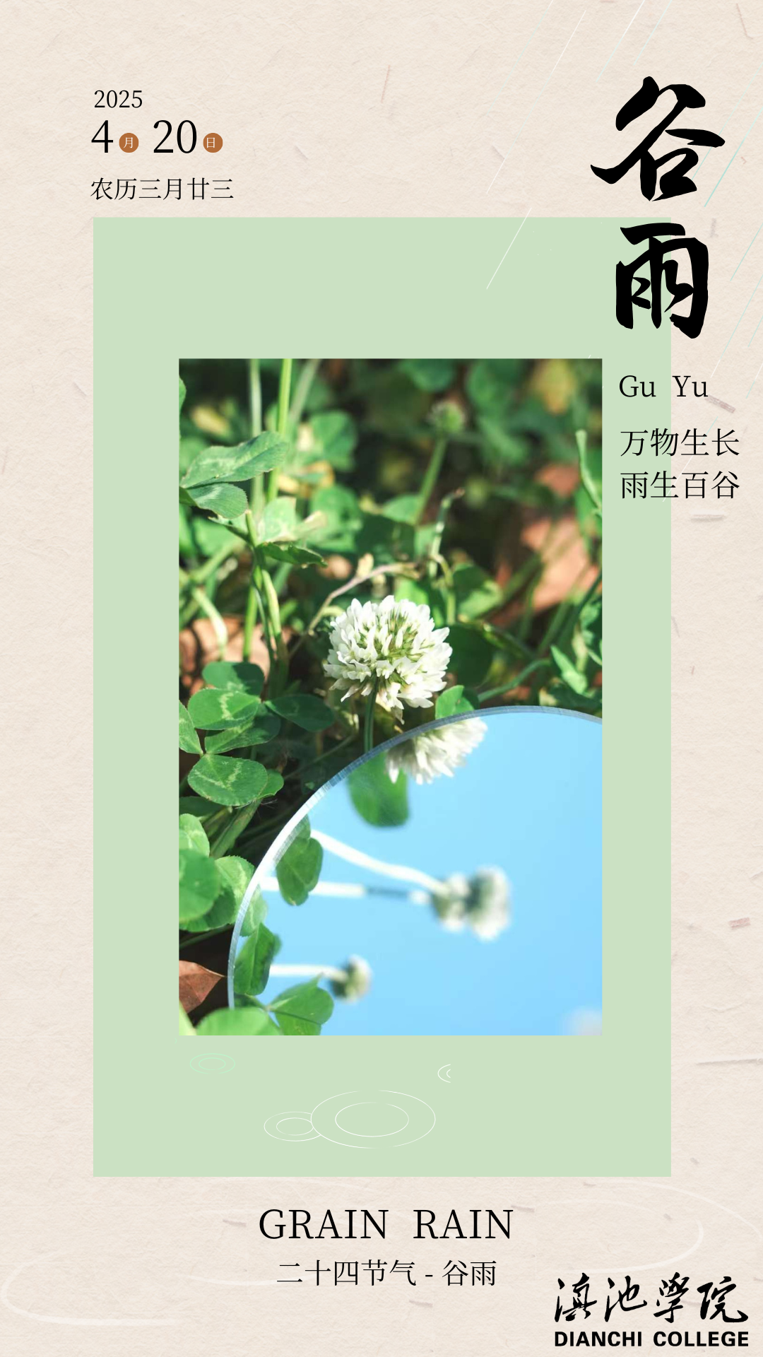 谷雨,是二十四节气之第6个节气,春季的最后一个节气。斗指辰;太阳黄经为30°;于每年公历4月19日—21日交节。谷雨取自“雨生百谷”之意,此时降水明显增加,田中的秧苗初插、作物新种,最需要雨水的滋润,降雨量充足而及时,谷类作物能茁壮成长。谷雨与雨水、小满、小雪、大雪等节气一样,都是反映降水现象的节气,是古代农耕文化对于节令的反映。谷雨时节,在中国南方地区,往往开始明显多雨,而特别是华南,一旦冷空气与暖湿空气交汇,往往形成较长时间的降雨天气。秦岭—淮河是南方春雨和北方春旱区之间的过渡地区,从秦岭-淮河附近向北,春雨急剧减少。在北方地区,谷雨是“终霜”的象征。