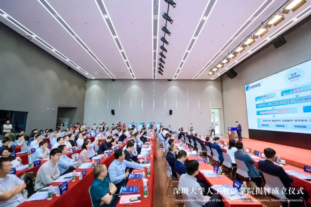 李永华宣读《关于成立深圳大学人工智能学院的决定》,人工智能学院筹建领导小组执行副组长李坚强介绍学院情况,校领导以及多位院士共同为深圳大学人工智能学院揭牌,标志着深圳大学人工智能学院正式开启了人工智能教育与科研的全新征程。