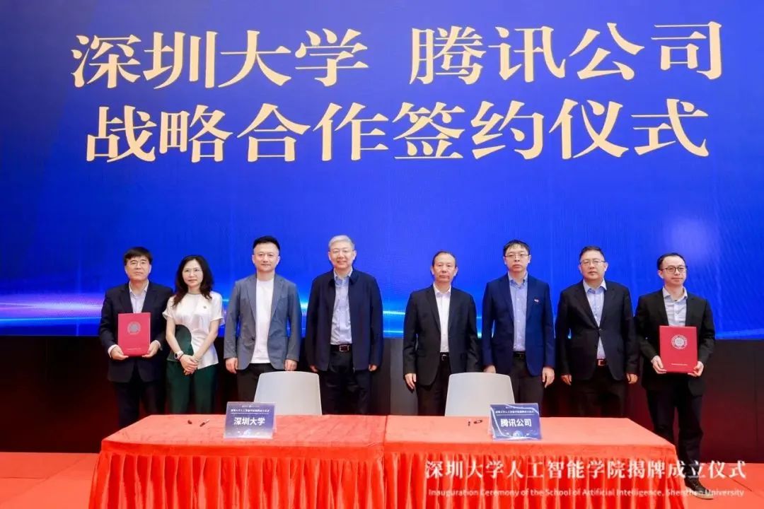 为进一步深化产学研合作,推动人工智能技术的应用与产业转化,深圳大学人工智能学院分别与罗湖区人民政府,腾讯、华为等多家知名企业与机构签署了战略合作协议,通过建立长期稳定的合作关系,整合各方资源,共同开展人工智能领域的技术研发、人才培养和产业应用,构建从政策引领到产业应用的全链条合作模式。