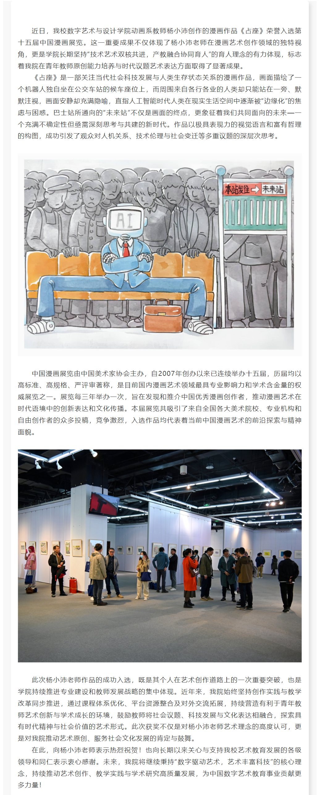 喜报|我校杨小沛教师作品《占座》成功入选国家级权威漫画展