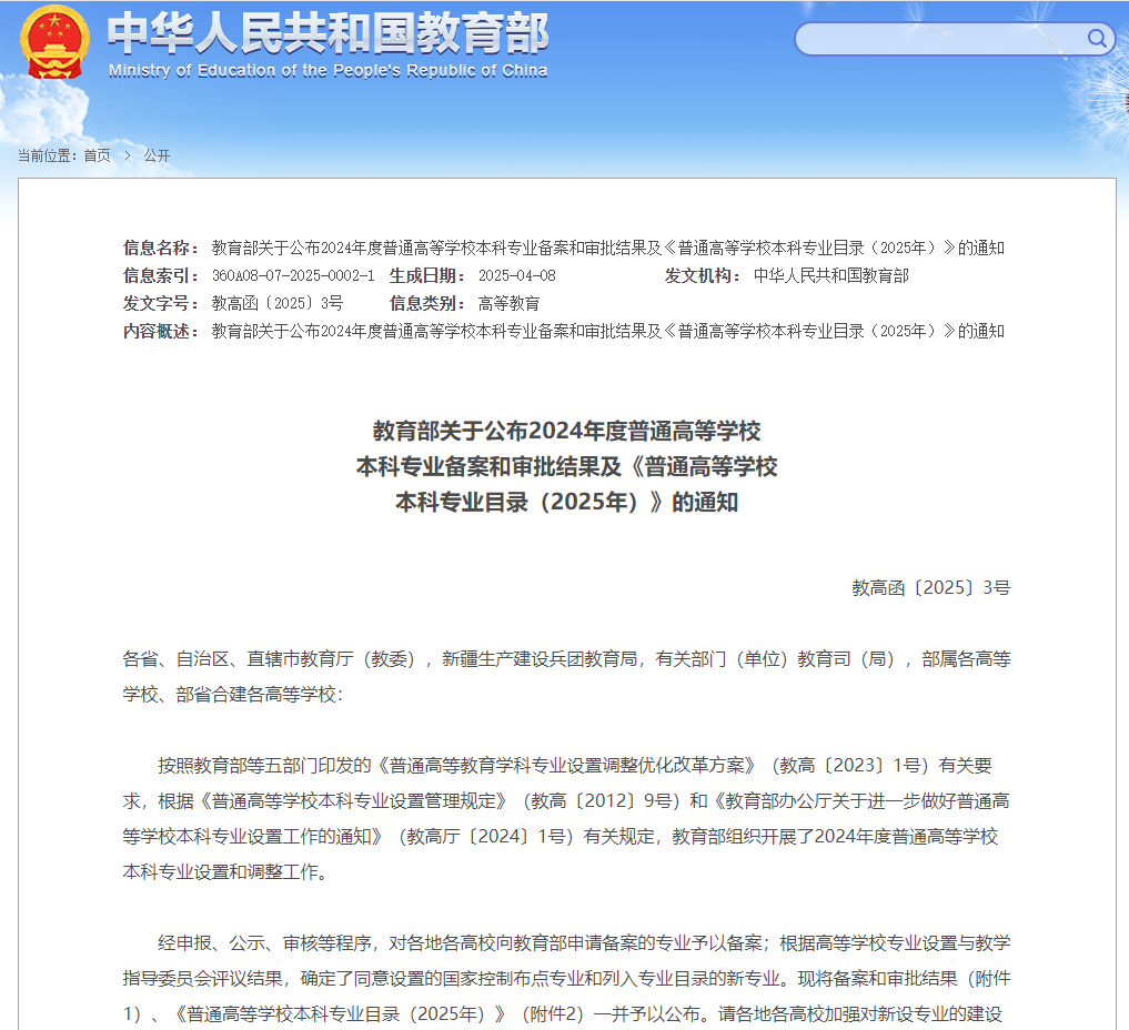近日,教育部公布了2024年度普通高等学校本科专业备案和审批结果,我校申报的人工智能专业、机器人工程专业获得批准,自2025年起开始招生。