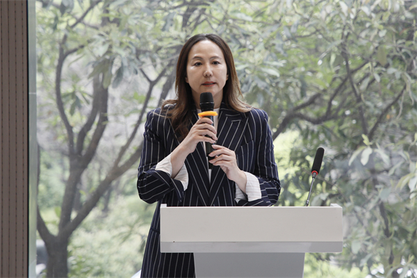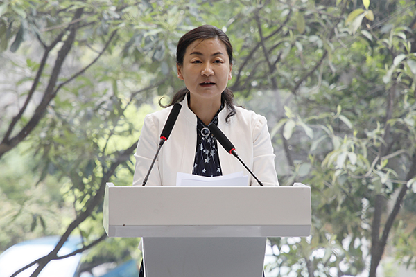 湖北省侨联党组成员、副主席王慧萍代表湖北省侨联对学校归国华侨联合会的成立表示热烈祝贺。刘恒 摄