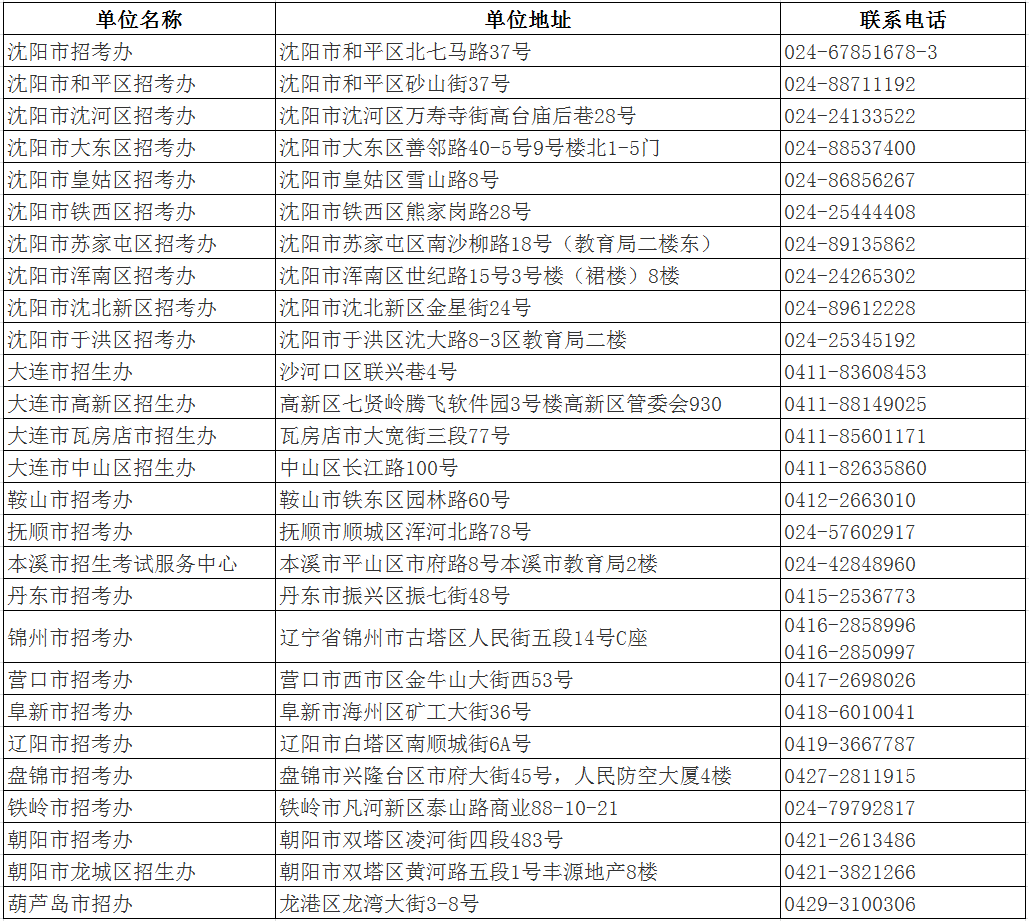 各市招考办咨询电话
