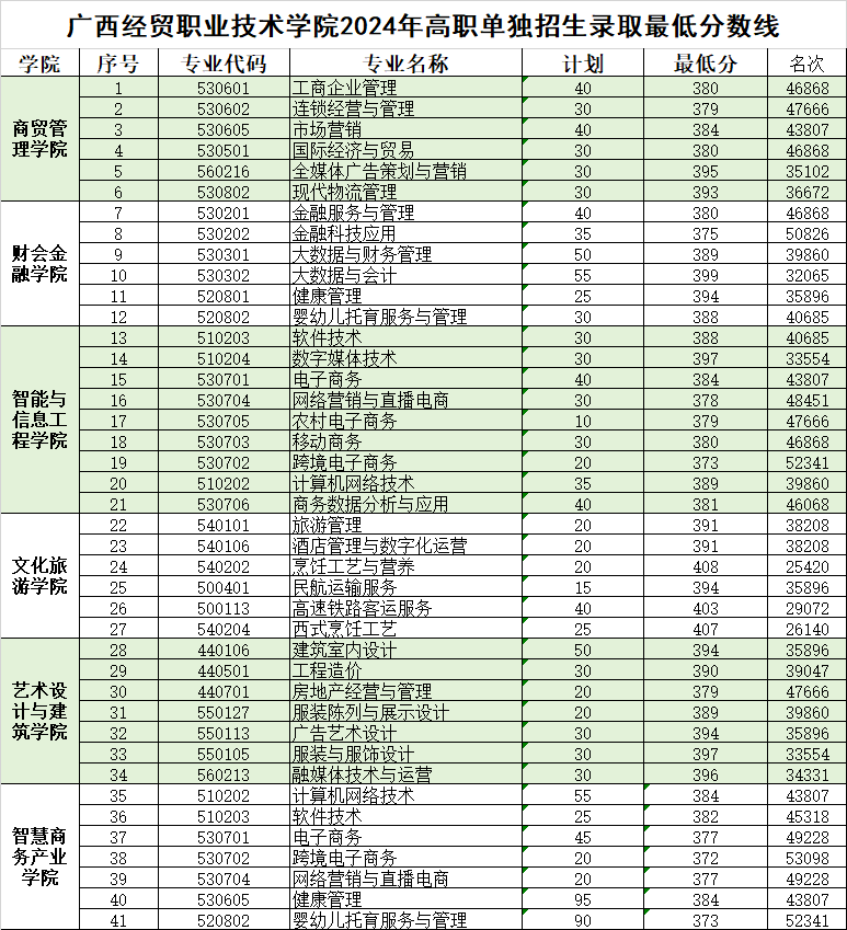 广西经贸职业技术学院2024年高职单独招生录取最低分数线广西经贸职业技术学院2024年高职单独招生录取最低分数线