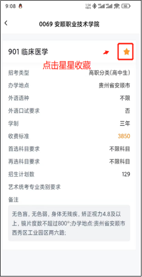 考生如想收藏某院校专业,可通过点击院校名称后⭐️进行收藏。