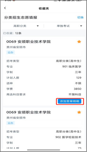 考生可将感兴趣的院校专业添加至“收藏夹”进行收藏。