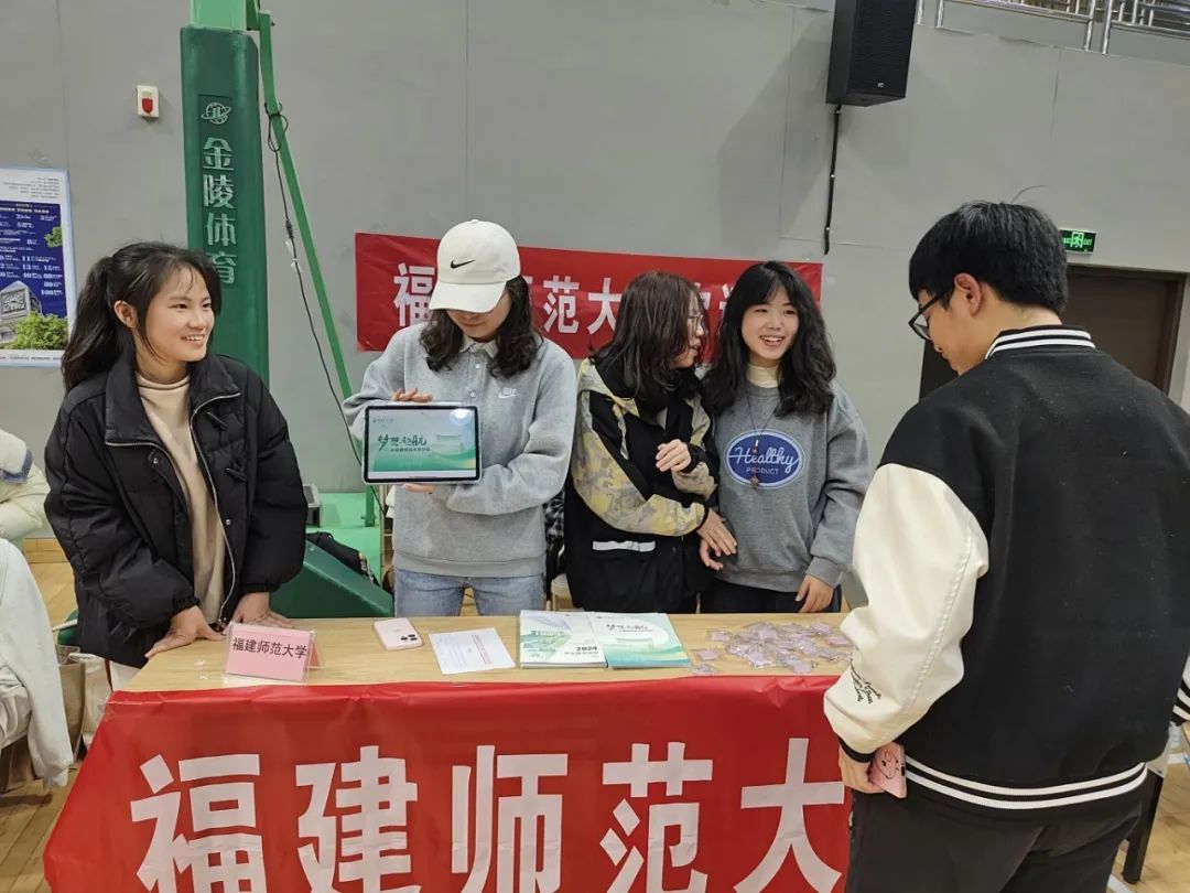 宣传活动分PPT宣讲和线下咨询交流两个环节。活动当天,在子江中学艺术中心二楼学术报告厅,团队成员们化身专业讲解员,通过生动有趣的讲解和丰富精美的图片资料,带领同学们走进福建师范大学,让大家对福建师范大学有了初步且全面的了解。宣讲结束后,队员们迅速转场至图书馆二楼,设立咨询交流平台。在这里,他们热情地为同学们介绍学校的更多细节,发放精心准备的宣传手册、物料以及明信片。为了让同学们获取更多资讯,队员们还积极邀请他们加入招生QQ群。