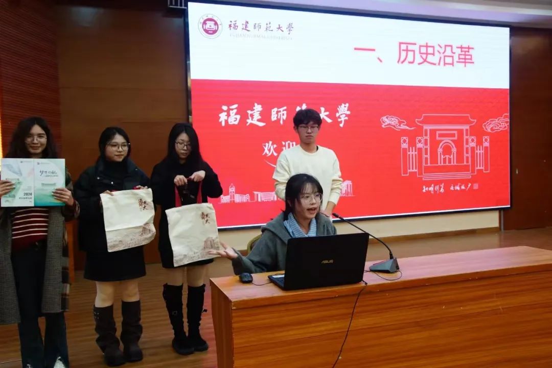 活动伊始,队员们就像贴心的学长学姐,为学弟学妹们全面且细致地介绍福建师范大学的基本概况。从学校源远流长的历史沿革,到地理位置的独特优势;从雄厚的师资队伍,到先进完备的教学设施,无一遗漏。同时,他们还精心挑选了许多校园风景和学习生活照片进行展示,让学弟学妹们仿佛身临其境,对大学生活有了更直观、更真切的感受。