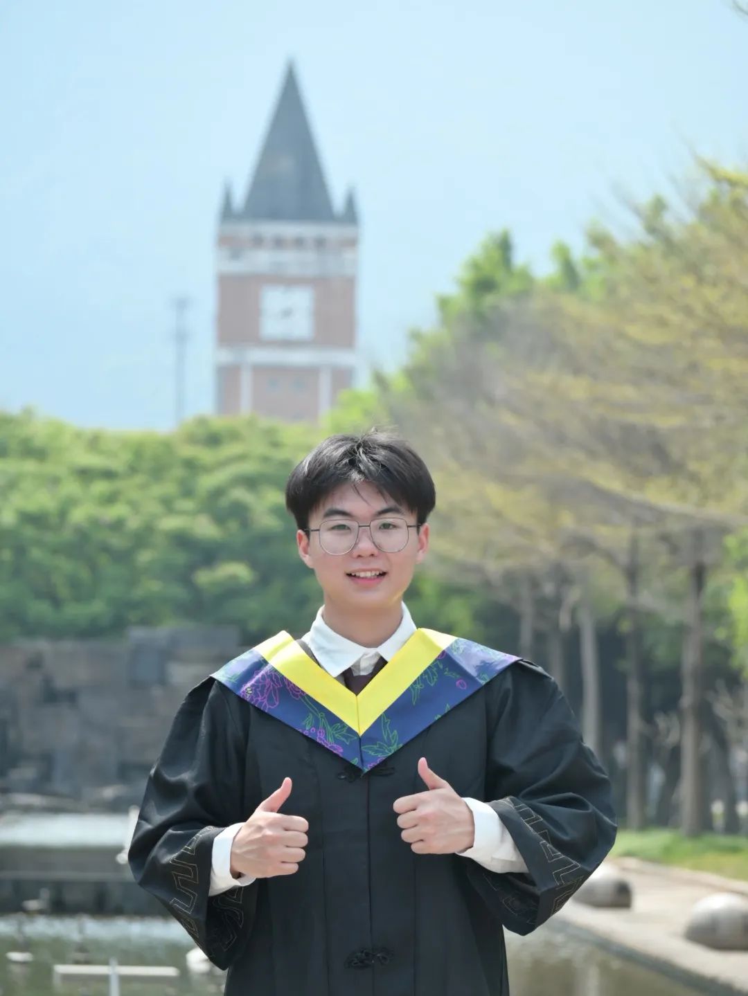 李鑫伟:谢谢师大用闽江的温柔和旗山的葱郁,包容了我四年的莽撞与成长。感谢师大,让我明白“知明行笃 立诚致广”不止是墙上的校训。又玄图书馆里的古籍、理工楼的实验数据、美院门口的油彩味,都在提醒我:这方天地永远尊重每一种求知的模样。愿旗山校区的蓝花楹永远绚烂如初,仓山老校区的红砖绿瓦常驻风华。衷心祝愿福建师范大学薪火相传、再谱华章,也热忱欢迎每一位怀揣梦想的学子加入这个温暖的大家庭!