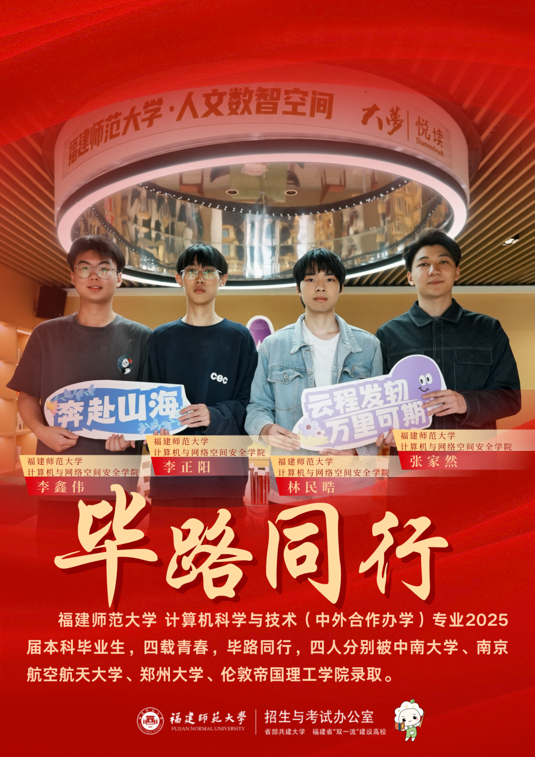 最是钟楼侧边柳,千枝蘸绿写新篇。福建师范大学招生与考试办公室继2024年推出《离歌声声》系列毕业生采访后,联动学生工作部再次推出《毕路同行》专栏,聚焦2025届本科毕业生从入学、成长、毕业、就业的青春叙事,让我们一起聆听青春破茧的声音,见证师大沃土孕育的繁花如何绽放于更广阔的天地吧!