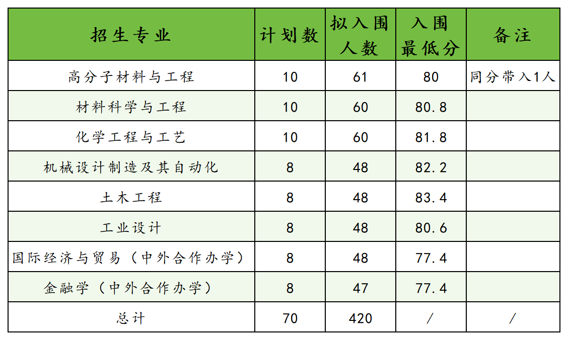 根据浙江省教育考试院有关文件和《浙大宁波理工学院2025年“三位一体”综合评价招生章程》的有关规定:按照综合素质测试成绩从高到低,不超过专业招生计划数6倍的比例确定入围考生名单(最后一名同分均入围原则)。经三位一体招生综合素质测试、统分及成绩汇总工作,共有420人最终拟入围。各专业入围情况如下: